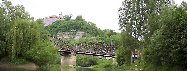 Die Carl-Alexander-Brücke mit dem Alten Schloss in Dornburg im Hintergrund . Foto: Kühn